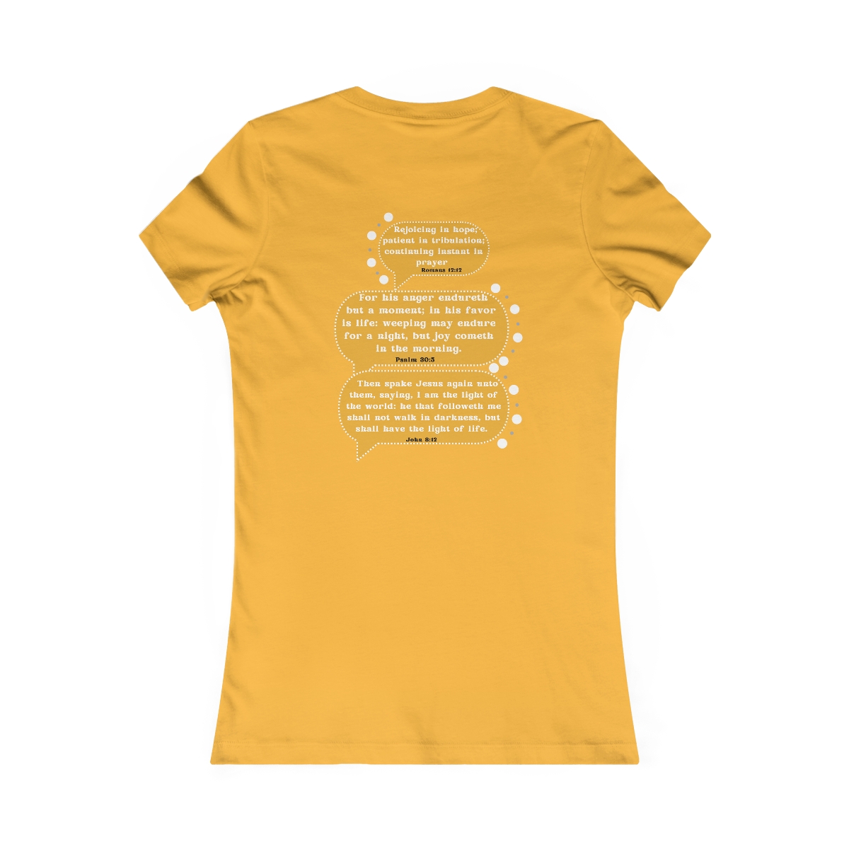 These Fruit of The Spirit Tees are super stylish and set to encourage. Each color bears a different fruit, sharing scriptures on the front and back which supports that particular fruit. These Tees fit like a well-loved favorite, perfect for active wear, casual wear and semi-formal.