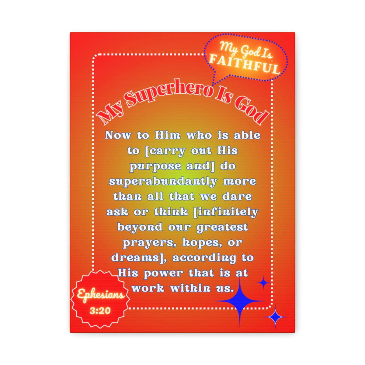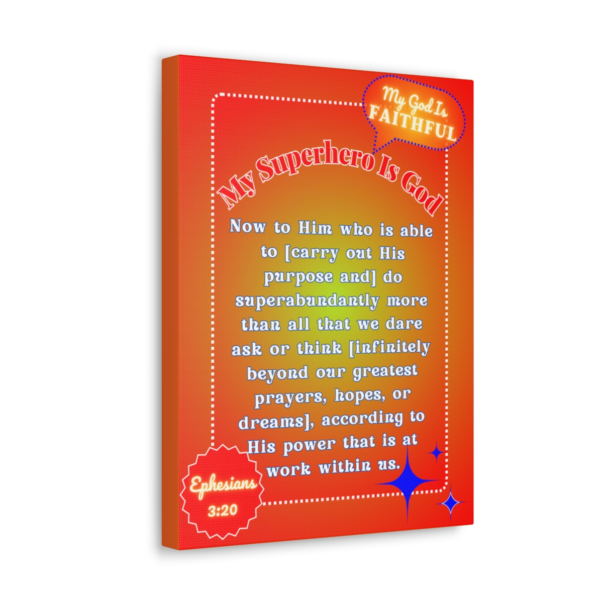 My Superhero Is God, Ephesians 3:20, Wall Art Canvas (For Boys)