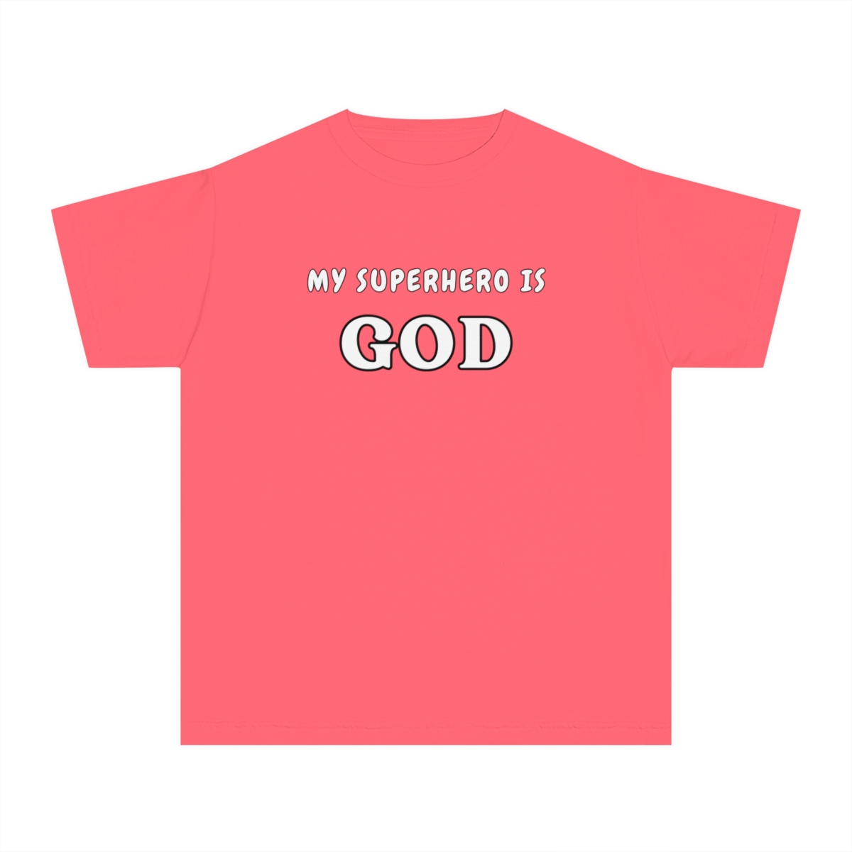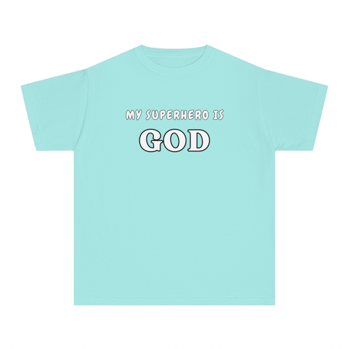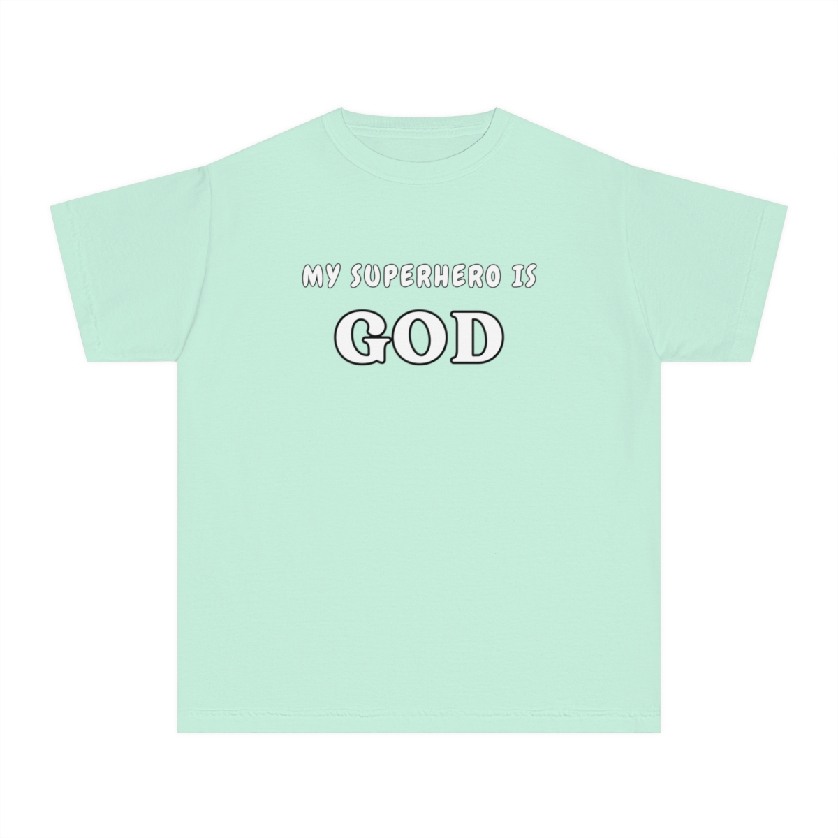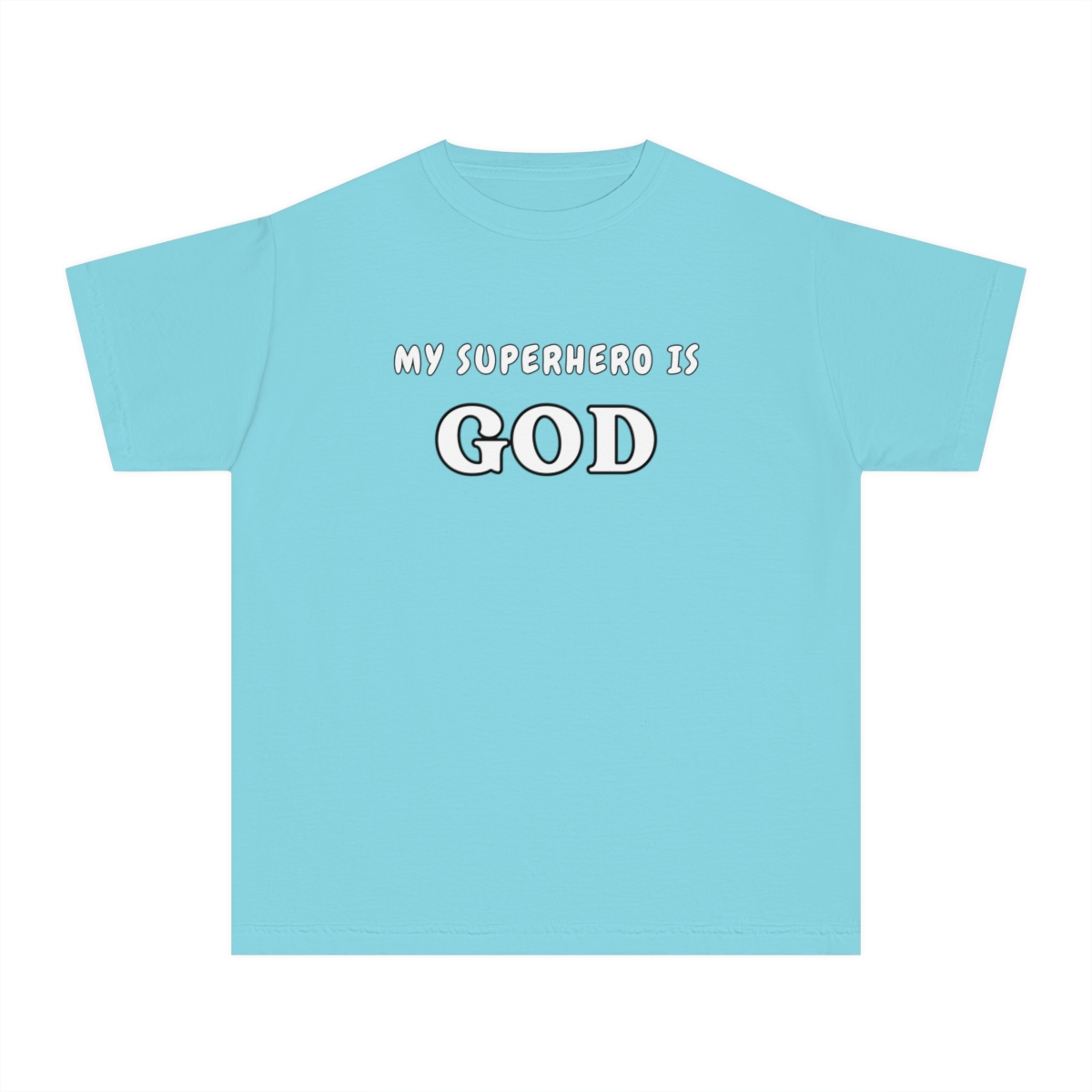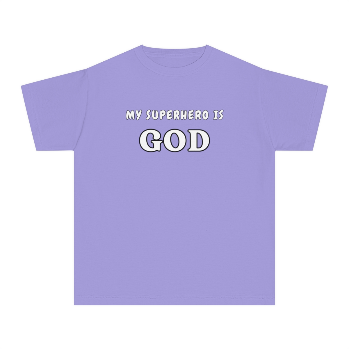 My Superhero Is God Tees are specifically for The Youth! They are vibrant in color and have a slamming statement on the back. These classic fit tees are blended with both comfort and agility, making it suitable for any child’s day-long wear..Yup that’s right. Made with 100% combed ring-spun cotton, the fabric is light, soft-washed and garment-dyed. May God’s Children be encouraged in the fact that Jesus is indeed The True Superhero.