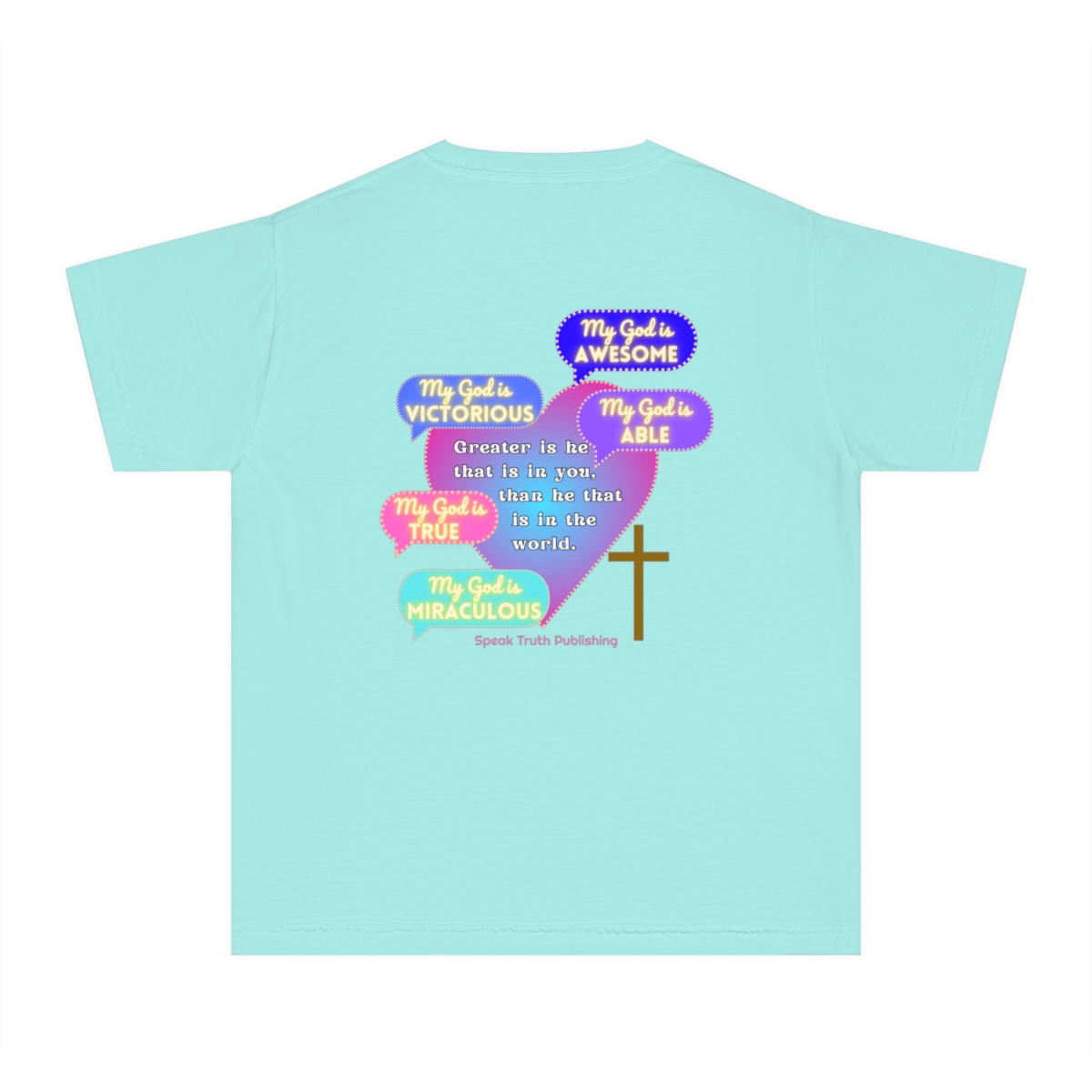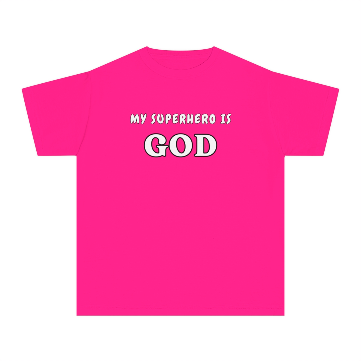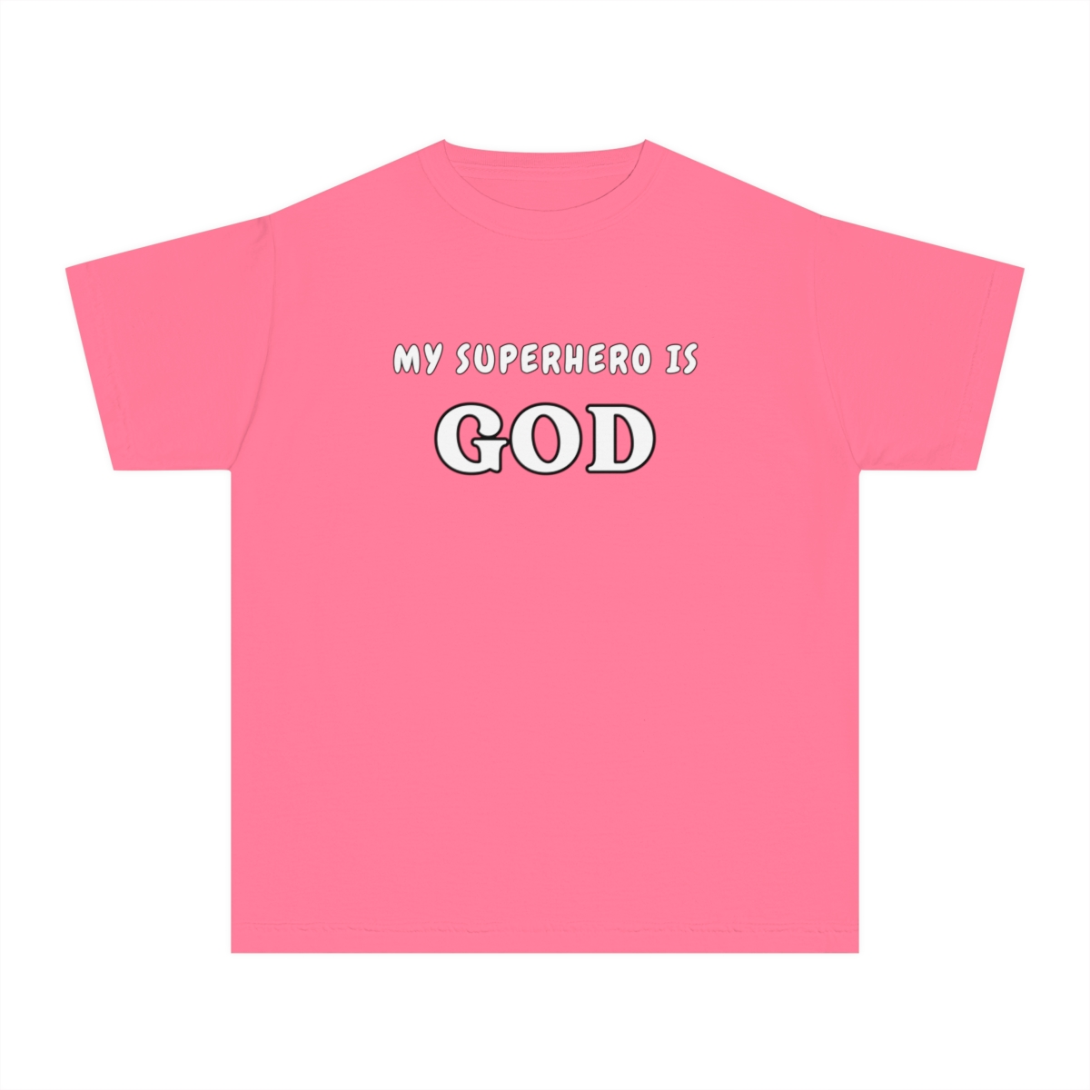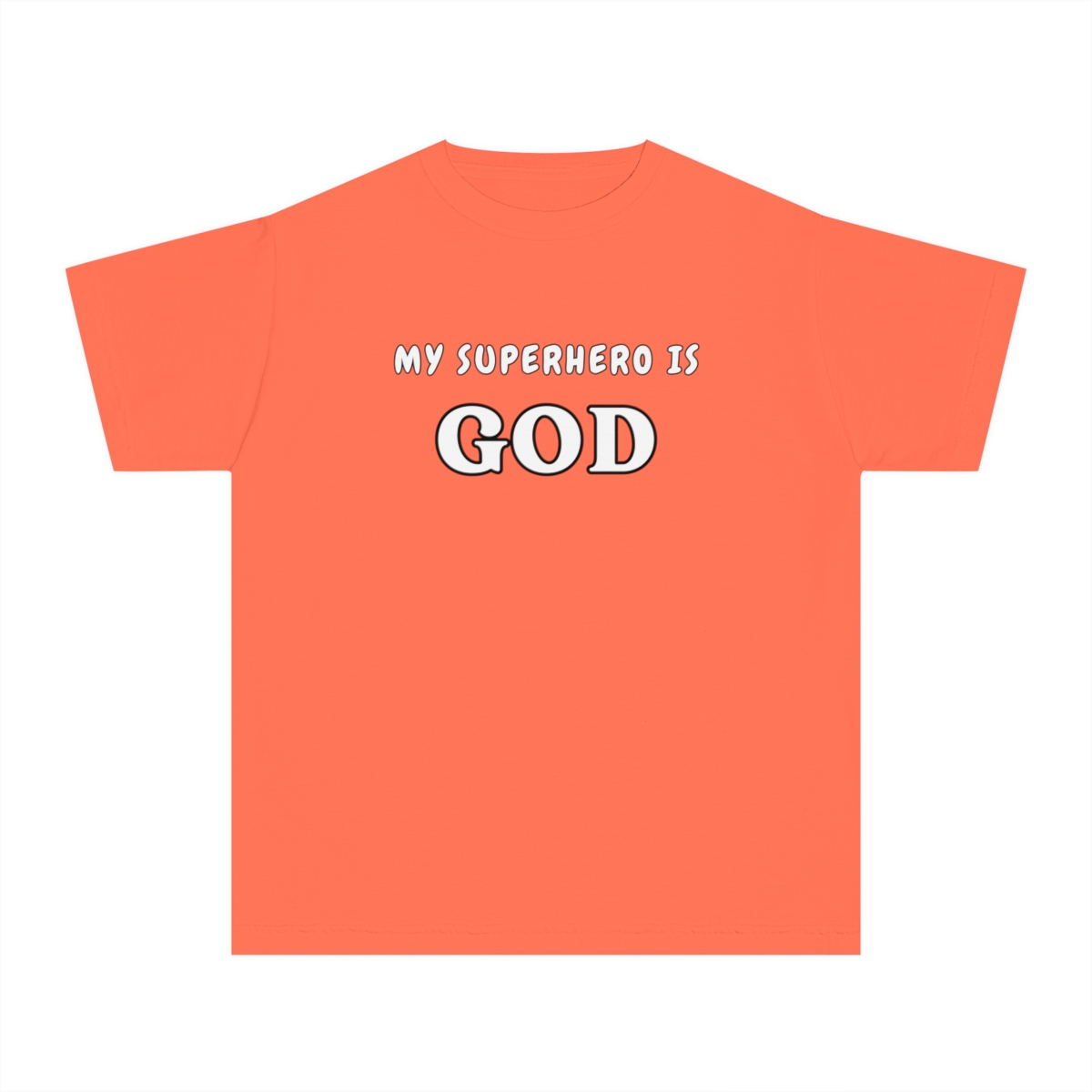 My Superhero Is God Tees are specifically for The Youth! They are vibrant in color and have a slamming statement on the back. These classic fit tees are blended with both comfort and agility, making it suitable for any child’s day-long wear..Yup that’s right. Made with 100% combed ring-spun cotton, the fabric is light, soft-washed and garment-dyed. May God’s Children be encouraged in the fact that Jesus is indeed The True Superhero.